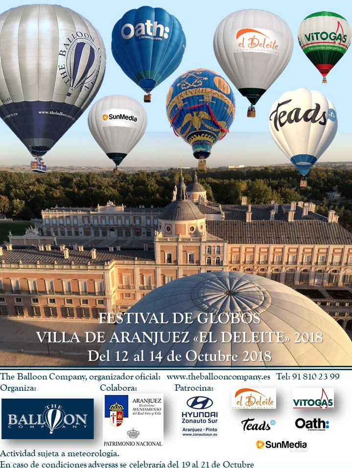 FESTIVAL DE GLOBOS VILLA DE ARANJUEZ 18/09/201810/10/2018 ivanivo Calendar Cuando: 12/10/2018 – 13/10/2018 todo el día Europe/Madrid Zona Horaria 2018-10-12T00:00:00+02:00 2018-10-14T00:00:00+02:00 Donde: Plaza de Parejas. Palacio Real de Aranjuez Precio: Gratis Contacto: The Balloon Company 918102399 Sitio web del evento